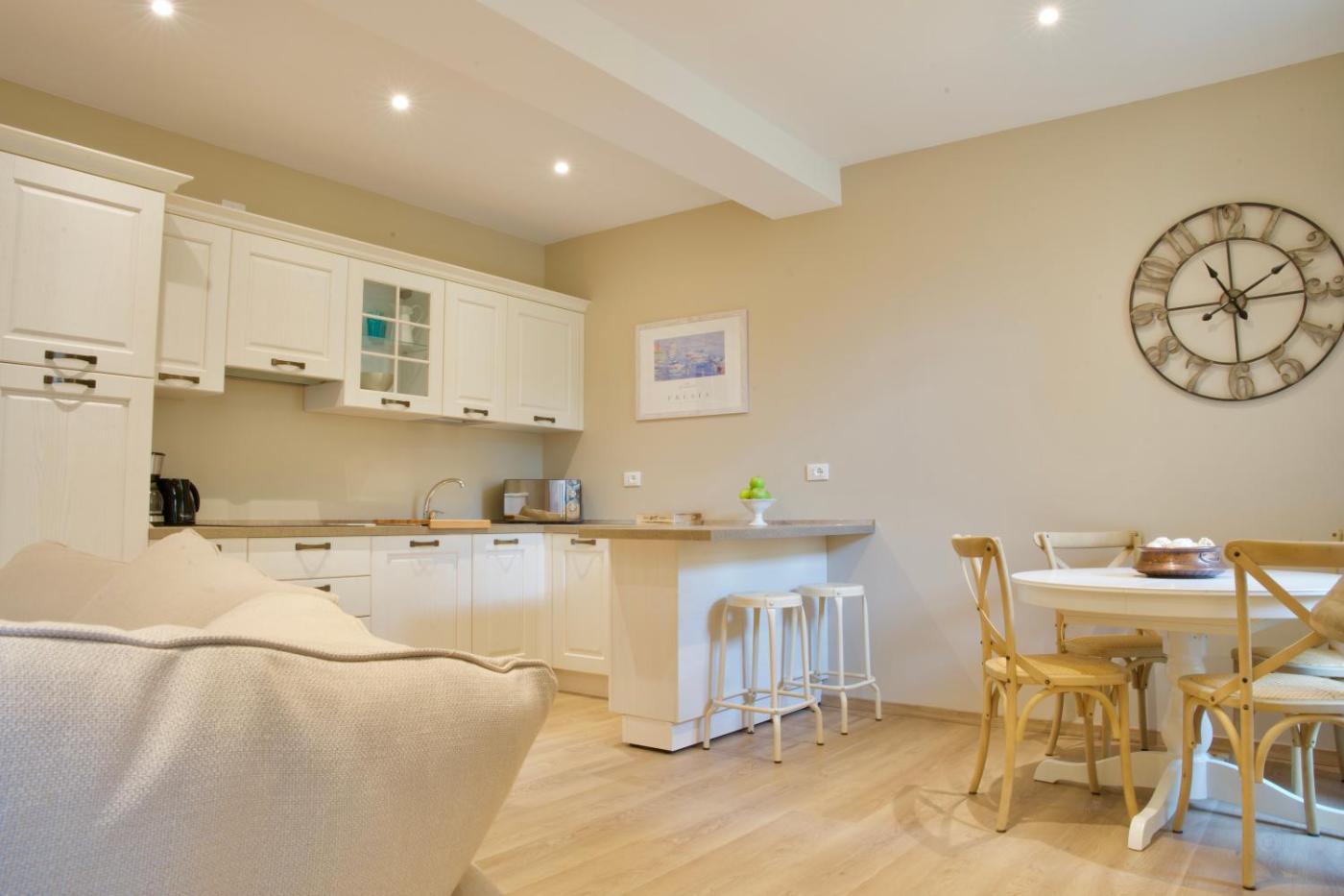 One-Bedroom Apartment. This air-conditioned apartment is comprised of 1 living room, 1 separate bedroom and 1 bathroom with a walk-in shower. The fully equipped kitchen features a stovetop, a refrigerator, a dishwasher and kitchenware. The apartment has tiled floors, a seating area with a flat-screen TV, a tea and coffee maker, a wardrobe as well as garden views. The unit offers 2 beds.